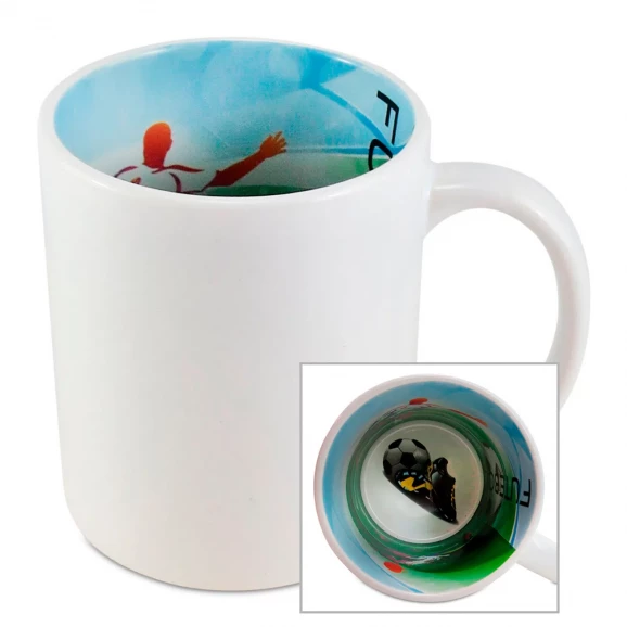 CANECA BRANCA PARA SUBLIMAÇÃO COM INTERIOR TEMÁTICO FUTEBOL