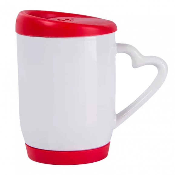 CANECA CERAMICA ALÇA CORAÇÃO TAMPA SILICONE VERMELHA