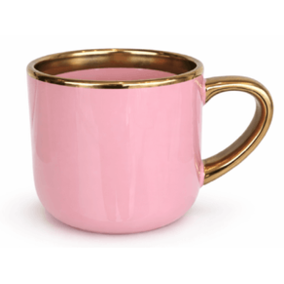 Caneca Imperial Cerâmica Rosa para Sublimação com Alça e Borda Ouro - 400ml
