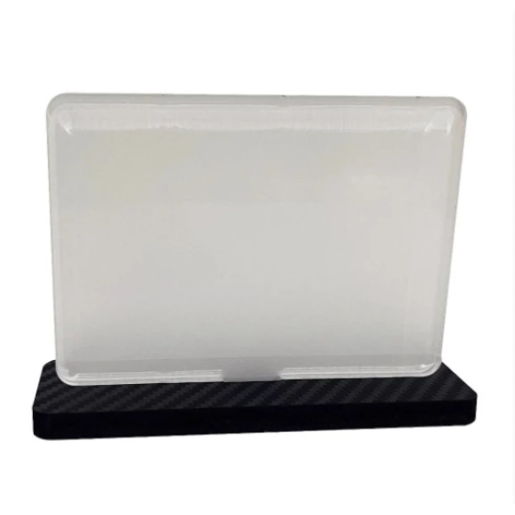 PLACA 10X7CM ACRILICO RETROVERSO BASE 6MM ADESIVO FIBRA PRETA