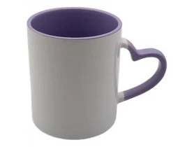 Caneca Colorida Lilas para Sublimação Alça Coração